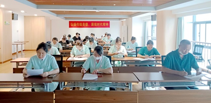 為深入貫徹落實(shí)省市“干部素質(zhì)提升年”部署要求,緊扣“六大行動(dòng)”工作舉措,進(jìn)一步建強(qiáng)基層黨組織,優(yōu)化干部隊(duì)伍,持續(xù)為康養(yǎng)公司高質(zhì)量發(fā)展提供堅(jiān)強(qiáng)組織保障和有力干部人才支撐,6月23日,柴泊湖武漢康養(yǎng)中心組織開(kāi)展護(hù)理理論知識(shí)考核,本次護(hù)理人員考核全員覆蓋,旨在全面檢驗(yàn)護(hù)理人員對(duì)核心照護(hù)理論、操作規(guī)范、應(yīng)急預(yù)案及長(zhǎng)者健康管理等專業(yè)知識(shí)的掌握與應(yīng)用能力。考核內(nèi)容緊貼一線服務(wù)需求,覆蓋日常照護(hù)全流程要點(diǎn)。